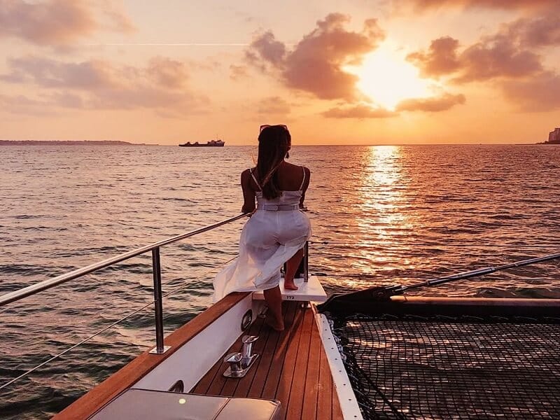 Cartagena es famosa por sus atardeceres intensos, cálidos y llenos de color. Verlos desde el mar es una experiencia completamente diferente: