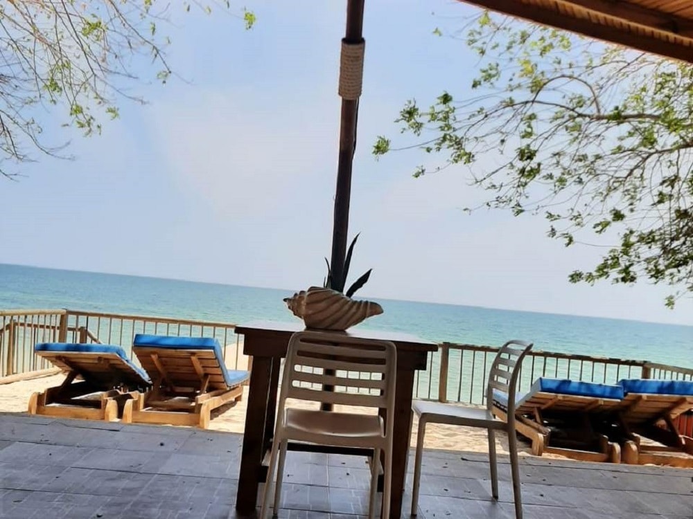 Zona de spa al aire libre con masajes frente al mar